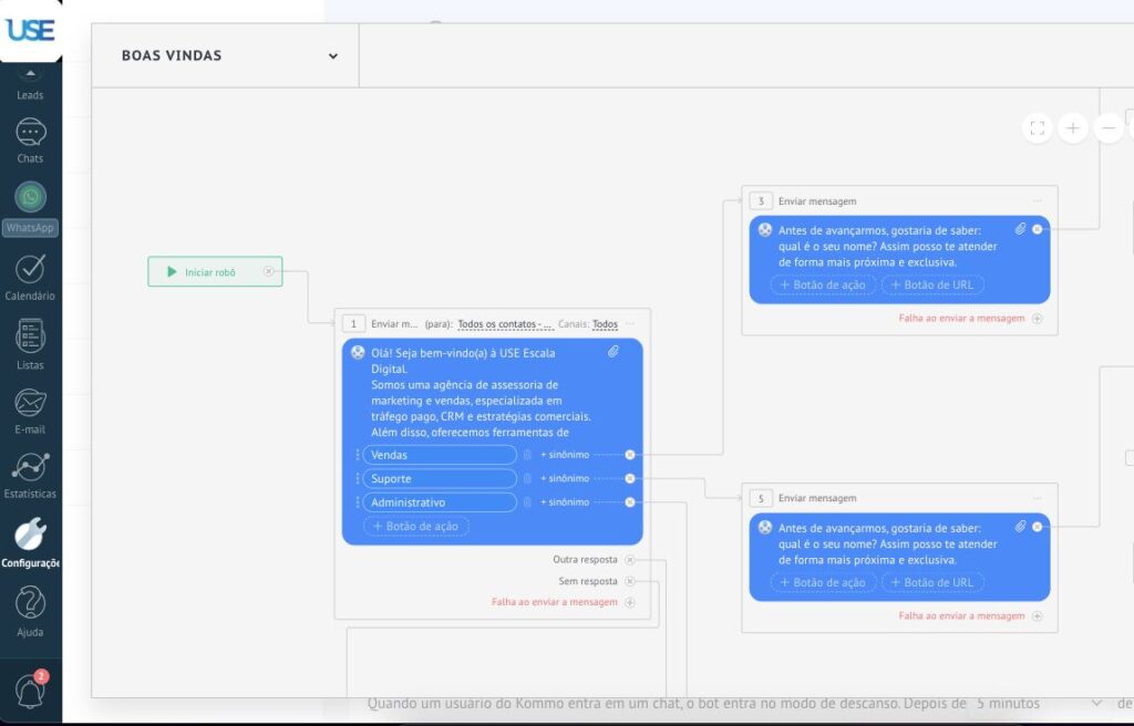 Exemplos: dar um “oi” inicial, pedir nome, coletar telefone, oferecer opções de menu.