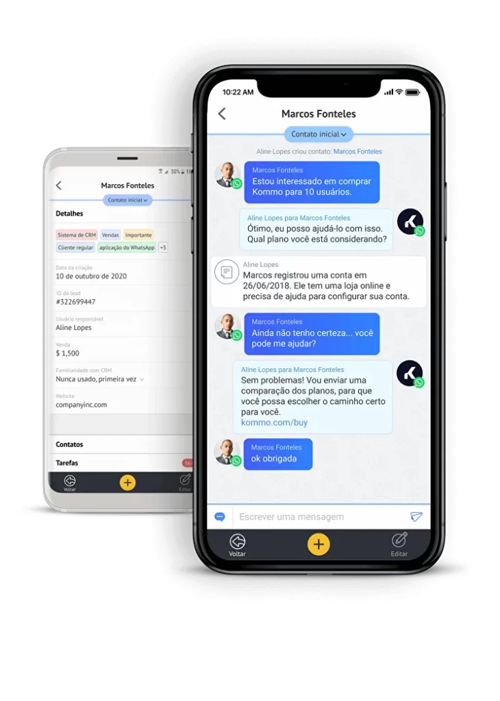 IA que trabalha junto com o CRM. Cada interação vira uma atividade registrada no Kommo, alimentando o funil com informações organizadas e prontas para análise.